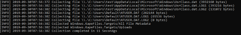 This will produce a new binary with our config embedded in it. Now when this binary is run it will immediately begin to collect the targets listed. Note that the collector needs to run as an administrator so typically the user will need to right click, select “Run As Administrator” and click through the UAC dialog: