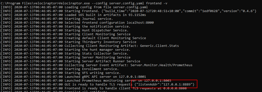 # velociraptor.exe -c server.config.yaml frontend -v