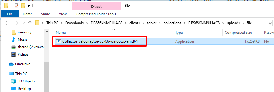 I will now download the zip file from the server and extract the collector into the download directory for testing.