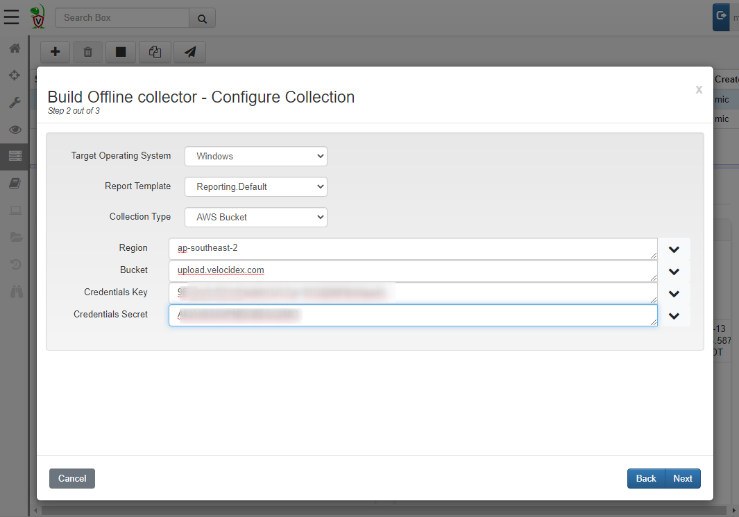 To do this, simply select a different Collection Type — I will choose AWS bucket or you can also upload to Google Cloud Storage. You will need to obtain an upload key for the S3 bucket. This is described in the AWS documentation . You should also restrict key access to the bucket to upload only since the keys are embedded inside the collector binary (See the AWS examples on user policies ).