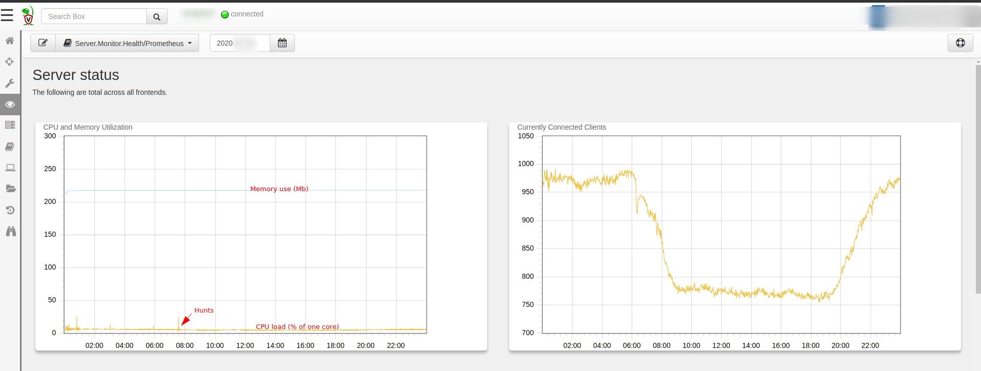 Similarly, the server also collects telemetry periodically, which you can see on the main dashboard (this data is also available using Prometheus/Grafana which are more appropriate for larger deployments). Again depending on the amount of post processing done on the server the CPU and memory footprint can vary.