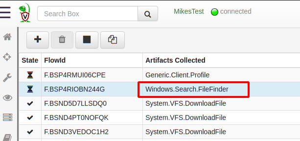To illustrate this process I will launch a CPU heavy collection on my endpoint. I create a new artifact collection of the Windows.Search.FileFinder artifacts, searching recursively for all files below C:\Users and hashing them all.