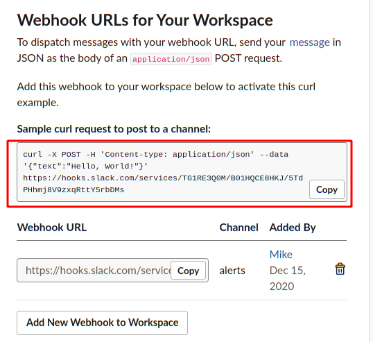 Posting the message is a very simple HTTP request — Slack even shows an example using curl