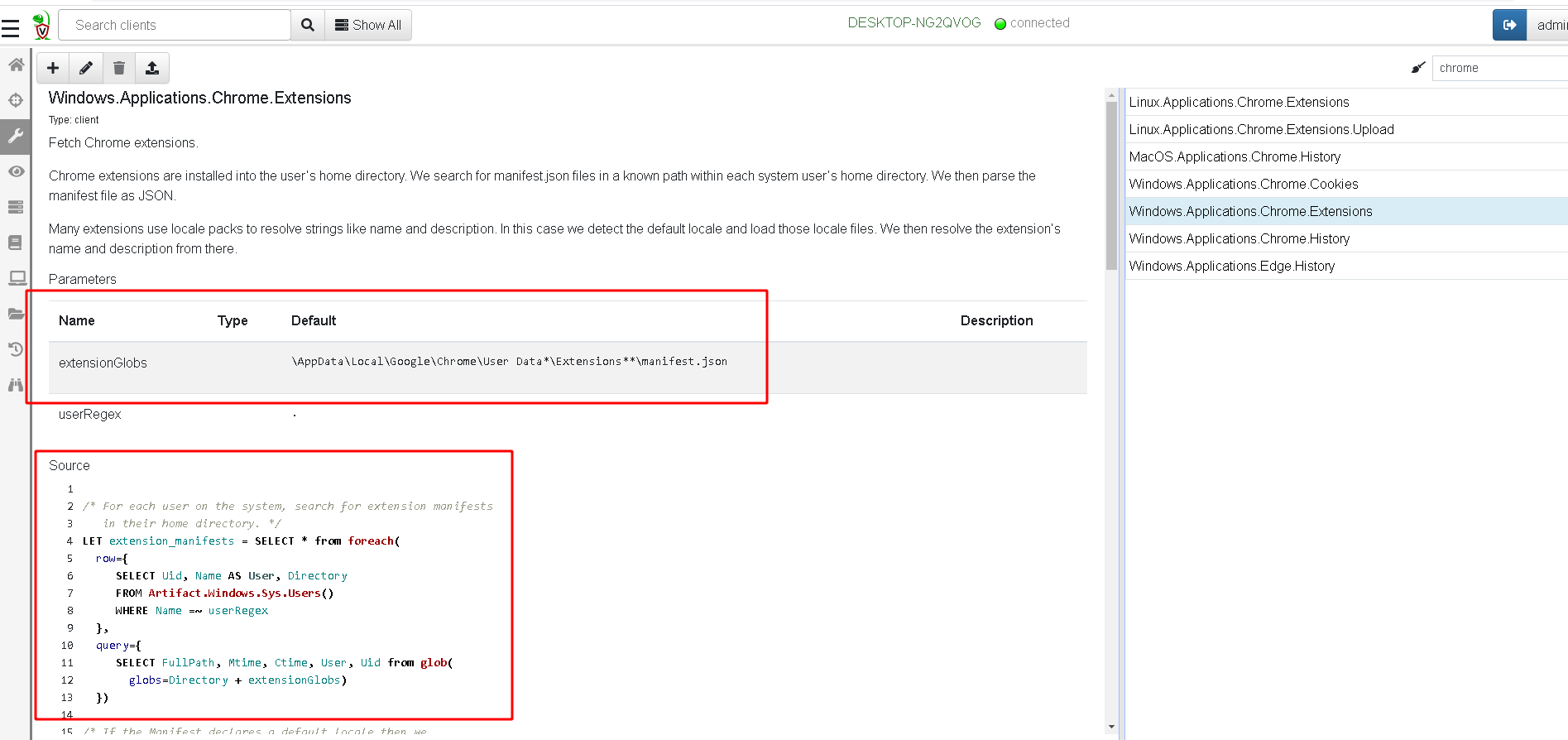This feature encourages users to develop reusable VQL Artifacts that can be put together like Lego bricks. Additionally, since artifacts are just VQL queries it is possible to add new capabilities to the tool with just a simple query — no need to write new tables in c++ like in OSQuery.