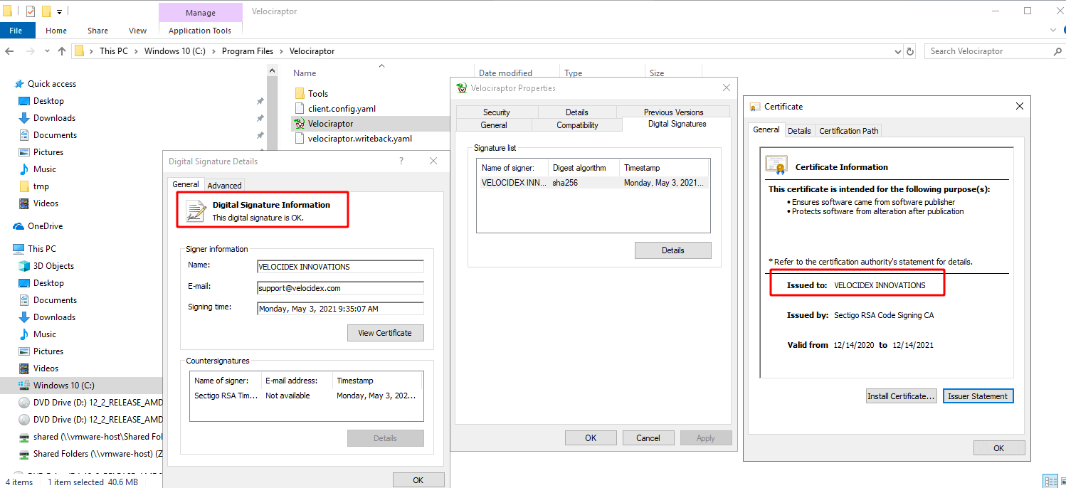 If you would like to quickly verify your windows executables at scale, take Velociraptor for a spin ! It is available on GitHub under an open source license. As always please file issues on the bug tracker or ask questions on our mailing list velociraptor-discuss@googlegroups.com . You can also chat with us directly on discord https://www.velocidex.com/discord