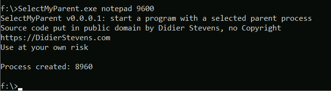 I will use Didier’s tool SelectMyParent to spoof notepad.exe as