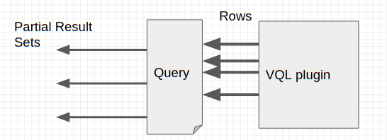 However, VQL queries do not have to terminate at all. If the VQL plugin they are calling does not terminate, the VQL query will continue to run and pass events in partial results to the VQL caller.