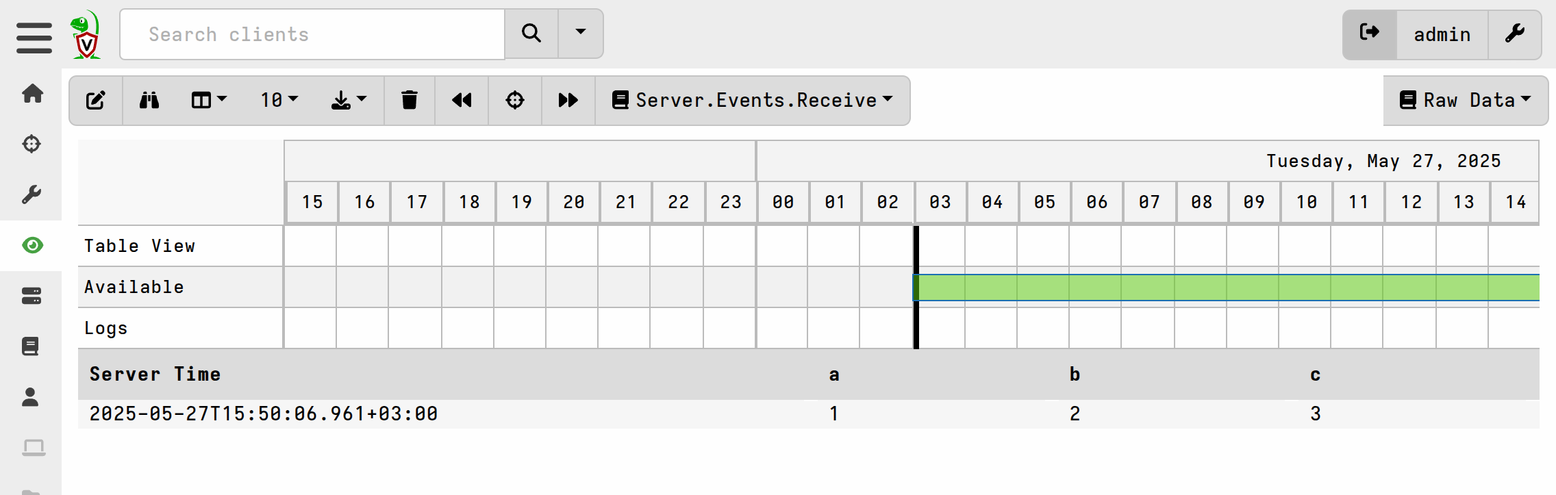 SELECT send_event(row=dict(a=1,b=2,c=3), artifact="Server.Events.Receive") FROM scope()