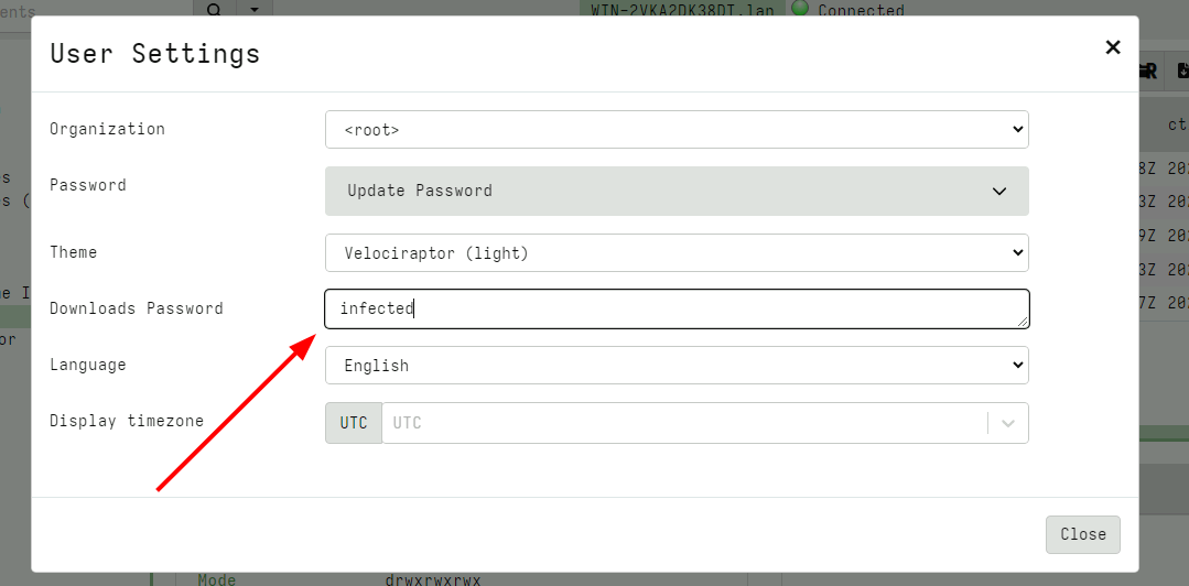 Password can be set in the user preferences (the top right tile with the username). This will enable the lock feature of the zip export - make sure to click close button to save the password (instead of just clicking outside the modal dialog).