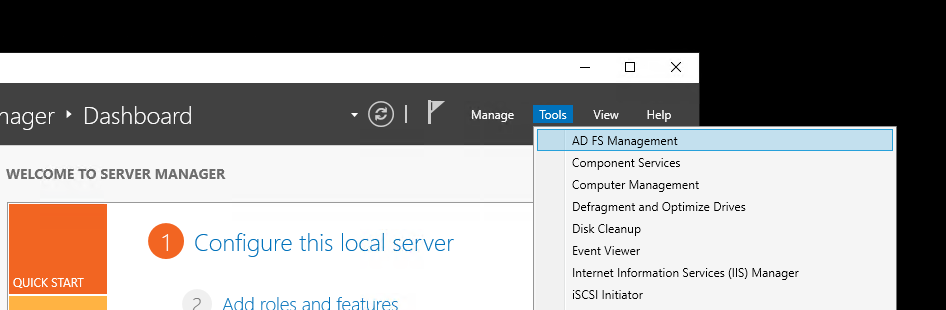 Open Server Manager > Tool > AD FS Management