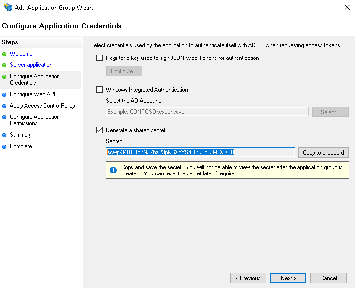Generate a shared secret and save it