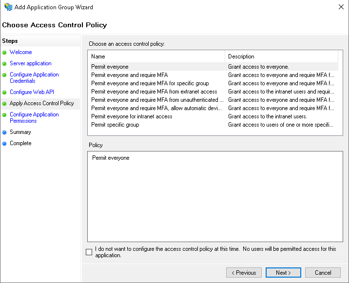 On next window, Choose Access Control Policy and filter as needed