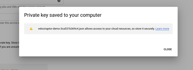 The key allows Velociraptor to act as the service account on this cloud